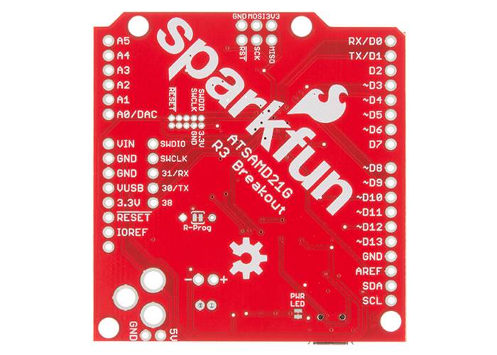 If you’re ready to step your Arduino game up from older 8-bit/16MHz microcontrollers, the SparkFun SAMD21 Dev Breakout is a great landing spot. The SparkFun SAMD21 Dev Breakout is an Arduino-sized breakout for the Atmel ATSAMD21G18, a 32-bit ARM Cortex-M0+ processor with 256KB flash, 32KB SRAM, and an operating speed of up to 48MHz. This dev breakout provides you with an Arduino hardware option that solves the problems of low storage limits and dynamic memory stack overflows that have plagued the previous iterations of the Arduino family. Yes, the SparkFun SAMD21 Dev Breakout is even fully supported in the Arduino IDE and libraries for the Arduino Zero!