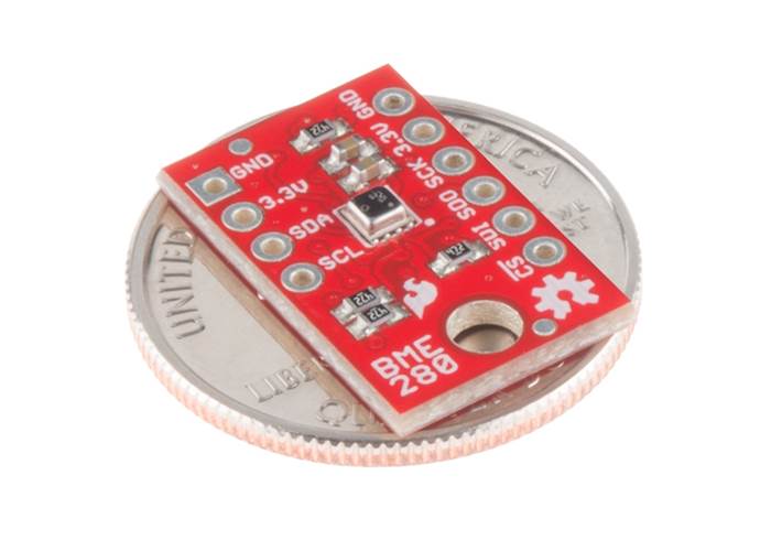 The SparkFun BME280 Atmospheric Sensor Breakout is the easy way to measure barometric pressure humidity and temperature readings all without taking up too much space. Basically anything you need to know about atmospheric conditions you can find out from this tiny breakout.