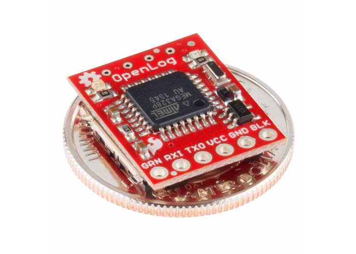 The SparkFun OpenLog is an open source data logger that works over a simple serial connection and supports microSD cards up to 64GB. The OpenLog can store or "log" huge amounts of serial data and act as a black box of sorts to store all the serial data that your project generates, for scientific or debugging purposes.