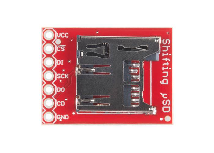 The SparkFun Level Shifting microSD Breakout is quite similar to the SparkFun microSD Transflash Breakout but with the included level shifting hardware this board allows you to utilise a microSD card at Arduino’s SD library’s top speed on a 5V system.