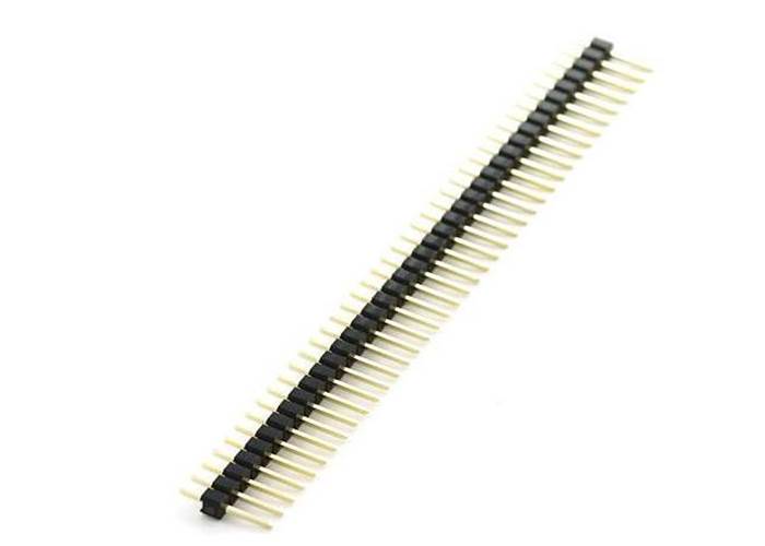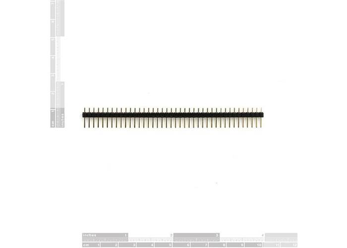 A row of headers - break to fit. 40 pins that can be cut to any size. Used with custom PCBs or general custom headers.Features:Pin Style: SquareNumber of Pins: 40Pin Spacing: 0.1" (2.54 mm)Pin Length: 11.5 mm