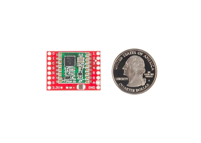 This is the SparkFun RFM69 Breakout, a small piece of tech that breaks out all the pins available on the RFM69HCW module as well as making the transceiver easy to use. The RFM69HCW is an inexpensive and versatile radio module that operates in the unlicensed ISM (Industry, Science and Medicine) radio band. It's perfect for building inexpensive short-range wireless networks of sensors and actuators for home automation, citizen science and more.
