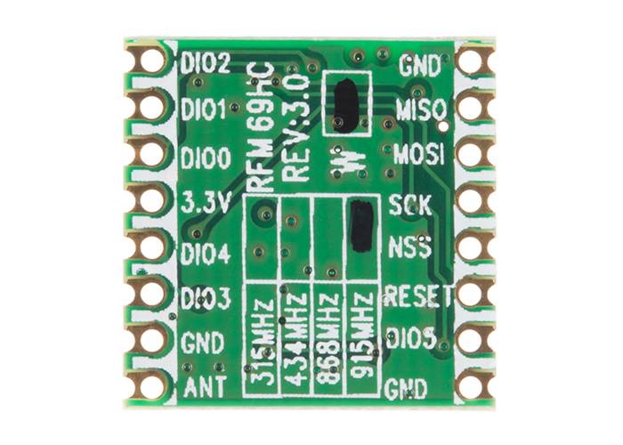This is the 915MHz base RFM69HCW Wireless Transceiver that is found on our RFM69 Breakout. The RFM69HCW is an inexpensive and versatile radio module that operates in the unlicensed ISM (Industry, Science and Medicine) band, a set of frequencies set aside for low-power, short-range, licence-free radios. It’s perfect for building inexpensive short-range wireless networks of sensors and actuators for home automation, citizen science and more.
