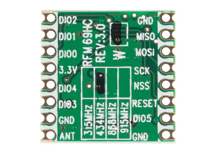 This is the 434MHz base RFM69HCW Wireless Transceiver that is found on our RFM69 Breakout. The RFM69HCW is an inexpensive and versatile radio module that operates in the unlicensed ISM (Industry, Science and Medicine) band, a set of frequencies set aside for low-power, short-range, licence-free radios. It’s perfect for building inexpensive short-range wireless networks of sensors and actuators for home automation, citizen science and more.