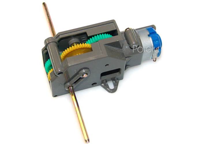 Note: The 4-speed crank-axle gearbox is a kit; assembly is required. To use the kit in robotics projects, you need to connect the motors to your own robot controller.