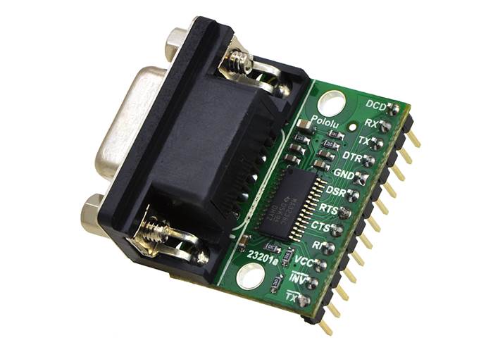 This adaptor is effectively a carrier board for the MAX3238 from Texas Instruments. It distinguishes itself from most competing units through its five drivers and three receivers, which give you access to all eight signal lines on a DB9 connector (the ninth pin is ground). This means that in addition to standard serial communication, your project can also use all of the handshaking lines and status lines. Even if you do not use them for their intended purposes, you might find it convenient to be able to reset your processor using one of the extra lines. A connection detection line gives your project additional options for responding to a physical connection to a serial port. All of this connectivity comes in a compact package that is less than twice the size of the DB9 connector alone.