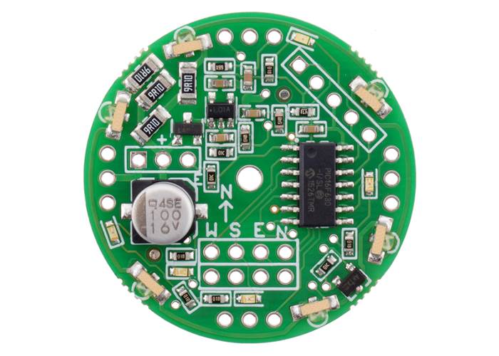 These newer IR beacons feature round PCBs with six wide-angle emitters to provide uniform broadcasting in all directions. The operating voltage range has increased to 6 – 16 V, and on-board voltage monitoring enables a more consistent output brightness over the voltage range. Most components are pre-assembled, so all you need to solder is the connectors and sensors (make sure you solder them in from the bottom of the PCB!).