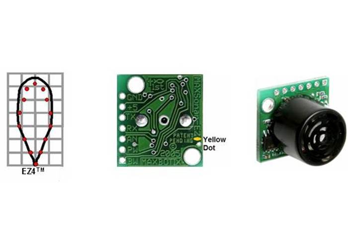 The Maxbotix LV-MaxSonar-EZ family of sonar range finders offers very short- to long-range detection and ranging in an incredibly small package with ultra-low power consumption. The LV-MaxSonar-EZ detects objects from 0 to 6.45 meters (21.2 feet) and provides sonar range information beyond 15 cm (6") with a resolution of 2.5 cm resolution (1 in). Objects between 0 and 15 cm range as 15 cm. The sensor provides three output interfaces, all of which are active simultaneously: digital pulse width output, analogue voltage output, and asynchronous serial digital output. The LV-MaxSonar is available in five factory-calibrated beam patterns (EZ0-4).