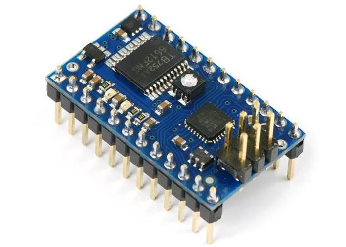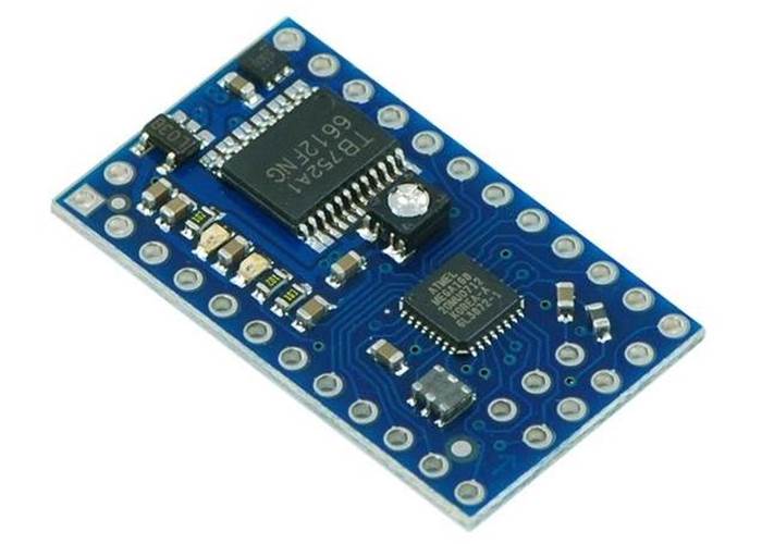 The Baby Orangutan B-328 is a very compact but complete robot controller, packing a high-performance ATmega328P AVR microcontroller (with 32 KB of program memory and 2 KB of RAM) and two motor drive channels in the same 24-pin form factor as competing units that include just a microcontroller.