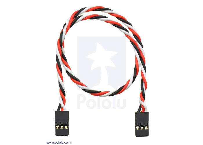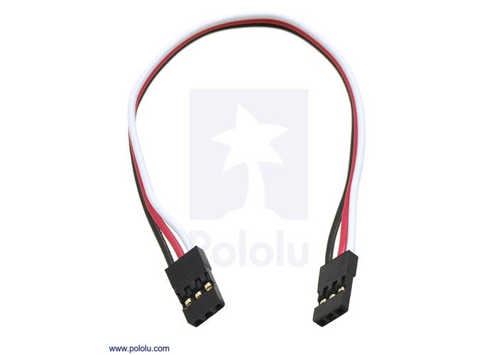 This servo extension cable has female JR connectors on both ends, so it can be used to make connections between devices with 0.1" 3-pin male headers, such as between RC servo controllers or RC receivers and motor controllers with an RC interface. The cable’s connectors are commonly found on RC servo leads and work with both male JR and male Futaba J connectors. They have gold-flashed contacts on a 0.1" spacing and are joined by 22-AWG, 60-strand wires that make this cable more flexible than standard servo cables.