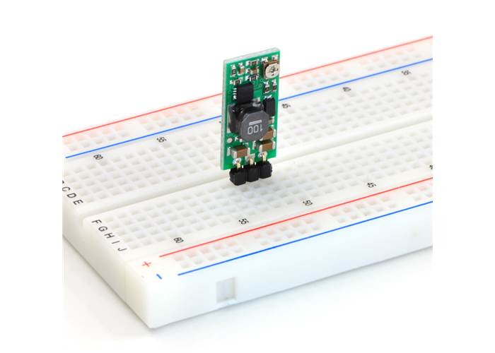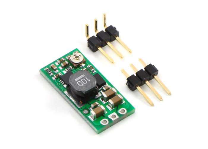 This powerful, adjustable boost regulator can generate an output voltage as high as 25 V from an input voltage as low as 1.5 V, all in a compact, 0.42″ x 0.88″ x 0.23″ package. A trimmer potentiometer lets you set the boost regulator’s output voltage to a value between 4 and 25 V.