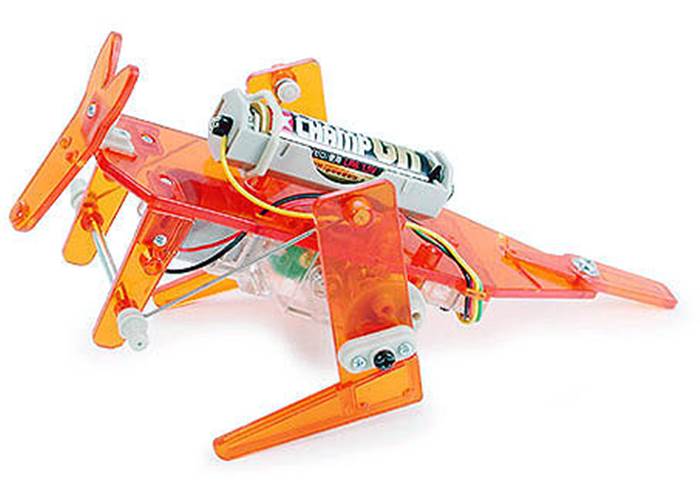 The body is made from a transparent orange ABS resin that allows you to see all of the motors, gears, cranks, and linkage rods in action.