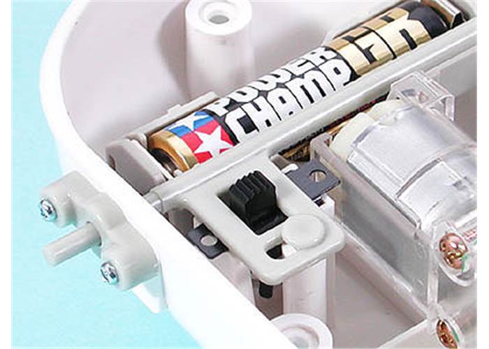 The Mechanical Blowfish is the first water based Tamiya Robocraft. It is propelled forward by a left-right moving tail fin rotated driven by a crank and linkage rod.