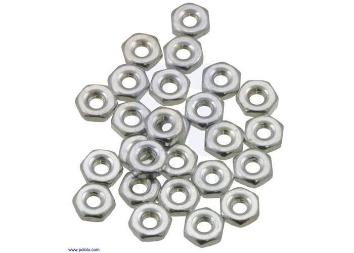 This #2-56 hex nut is made from steel, is zinc-plated, and comes in packs of 25.