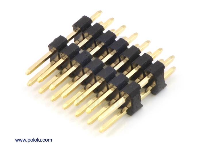 This custom connector is a double-row, 14-pin, extended (17.1 mm) male header strip. We use this header to connect the LCD on the 3pi robot to the main PCB.