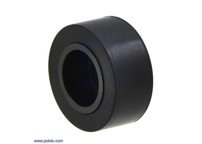 This rubber robot wheel has a diameter of 1.1 inches (28 mm) and is 0.5 inches (12.7 mm) wide. The aluminium hub is drilled for an 3 mm axle. Secure the wheel to your motor shaft with the included 4-40 hex set screw (requires a 0.050-inch hex wrench). The wheel assembly weighs 12.2 grams.