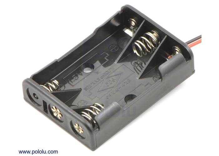 This battery holder features two 6″, 24-gauge leads that have approximately 5 mm of insulation stripped off of the ends. The red wire connects to the positive end of the batteries and the black wire connects to the negative end of the batteries.
