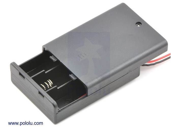 Enclosed battery holder for three AA cells. This holder features a lid that slides over the batteries and snaps into place to fully enclose them. It also features a switch that lets you open and close the electrical connection between the batteries and the holder’s leads.