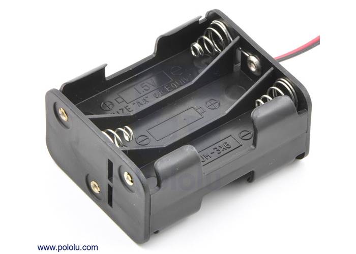 Battery holder for six AA cells arranged as two back-to-back three-cell holders.
