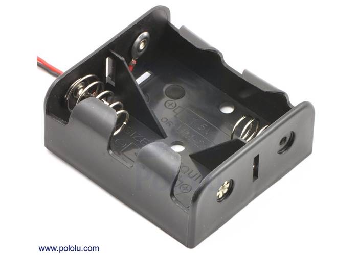 This battery holder features two 6″, 24-gauge leads that have approximately 5 mm of insulation stripped off of the ends. The red wire connects to the positive end of the batteries and the black wire connects to the negative end of the batteries.