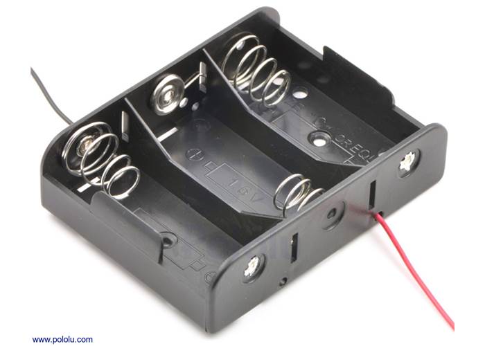 This battery holder features two 6″, 24-gauge leads that have approximately 5 mm of insulation stripped off of the ends. The red wire connects to the positive end of the batteries and the black wire connects to the negative end of the batteries.
