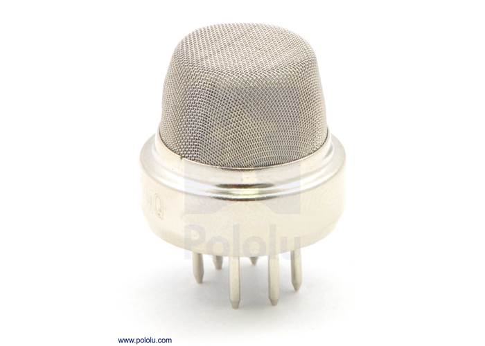 Connecting five volts across the heating (H) pins keeps the sensor hot enough to function correctly. Connecting five volts at either the A or B pins causes the sensor to emit an analogue voltage on the other pins. A resistive load between the output pins and ground sets the sensitivity of the detector. Please note that the picture in the datasheet for the top configuration is wrong. Both configurations have the same pinout consistent with the bottom configuration.The resistive load should be calibrated for your particular application using the equations in the datasheet, but a good starting value for the resistor is 20 kΩ.