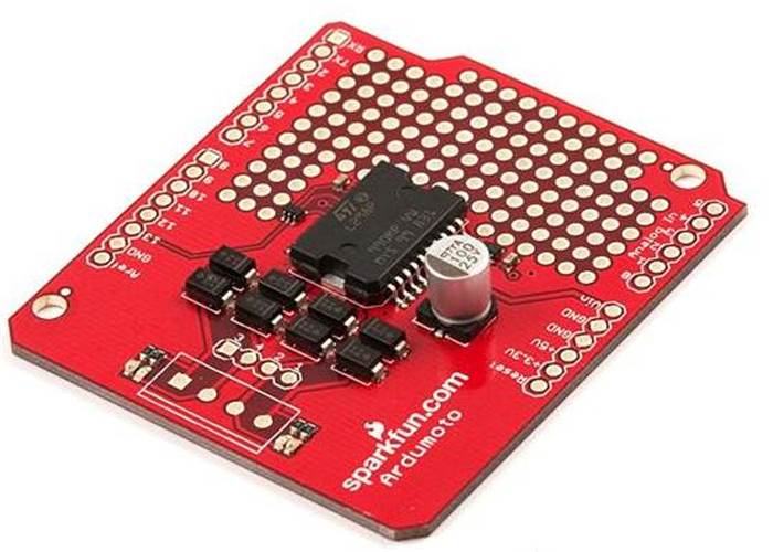 The Ardumoto Shield is a dual-motor controller for Arduino. Based on the L298 H-bridge the SparkFun Ardumoto can drive two DC motors up to 2A per channel. Combined with an Arduino the Ardumoto makes a fantastic controller platform for RC vehicles or even small autonomous robots.