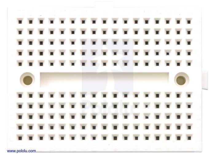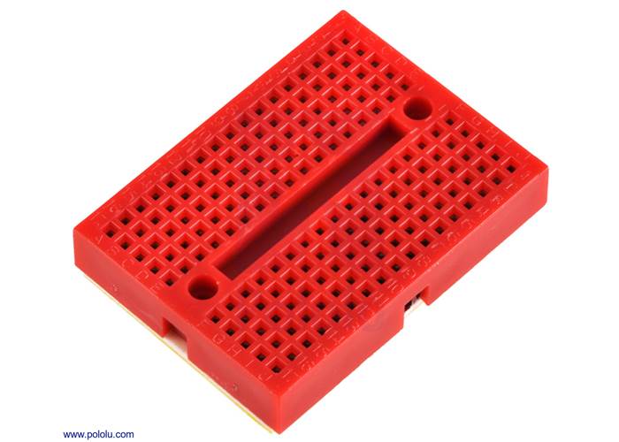 This 47 × 35 mm (1.84 × 1.37") solderless breadboard has 17 rows of tie points, enough for up to two 14- or 16-pin DIP ICs. Although it is difficult to see in the pictures, the rows and columns are conveniently labeled. The board features an adhesive backing and two mounting holes, and tabs allow multiple units to be connected for larger projects. This breadboard is red and will add a splash of color to your project; other colors are also available.