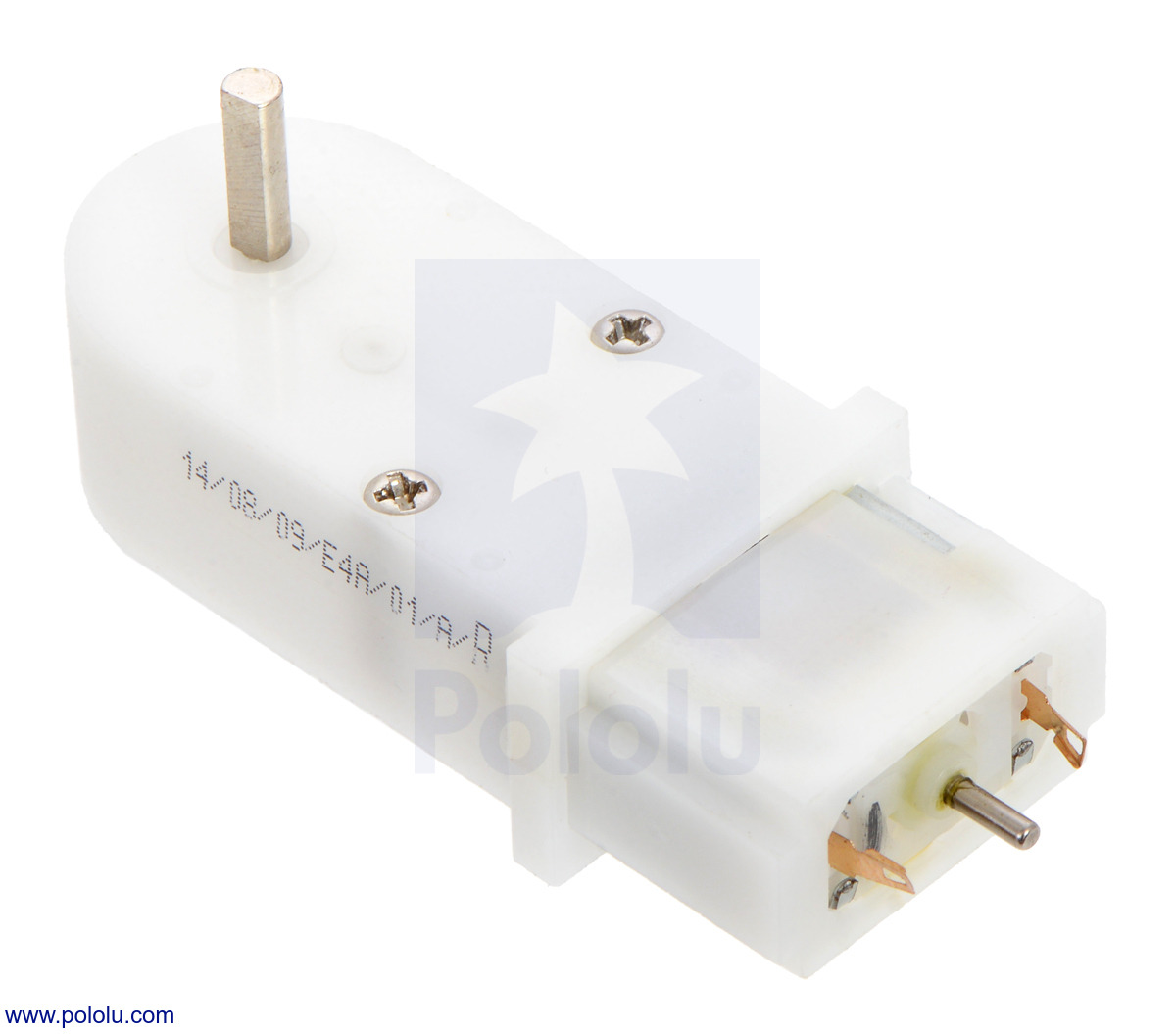 This compact, inexpensive plastic gearmotor ( high-power brushed DC motor with a 120:1 reduction gearbox) is well suited for use in small robots. While intended for operation at 4.5 V, it should run comfortably in the 3 V to 6 V range.