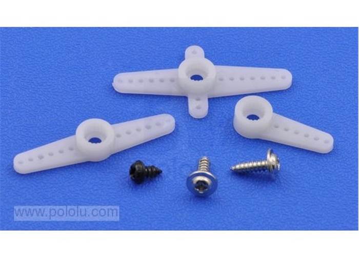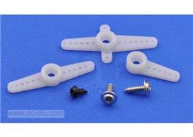 This is a great general-purpose actuator for tiny mechanisms. The picture below shows the hardware included with this servo. You can find more information about this servo under the specifications tab and in its datasheet (187k pdf).