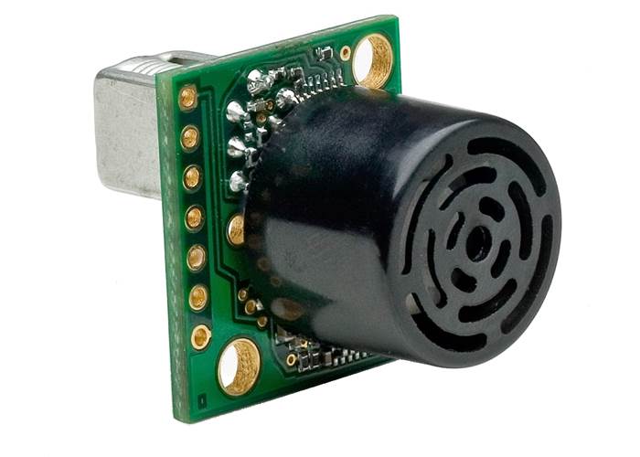 This ultrasonic (sonar) range finder features real-time automatic calibration and noise rejection resulting in virtually noise-free distance readings even in environments with changing acoustic and electrical noise. The sensor detects objects from 0 to 7.65 m (25 ft) and has a resolution of 1 cm (0.4") for distances beyond 20 cm (8"). The XL-MaxSonar works from 3.3 to 5V and peaks at only 0.5 W of power consumption.
