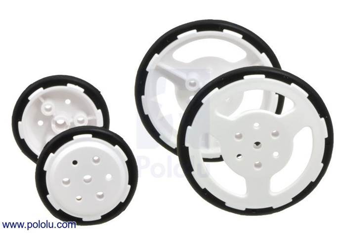 When the tires are assembled on hubs, the smaller wheels measure 36 mm in diameter and 3.5 mm wide and the larger wheels measure 55 mm in diameter and 3.5 mm wide.