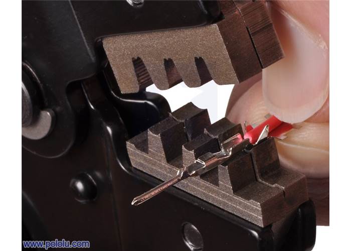 We also have a less expensive, narrower (4 mm) crimper that can also crimp JST RCY, JR, Futaba J, and 0.1" housing crimp pins, though this alternate tool can only crimp the full extent of wire barrel on the JST RCY pins. You can use the following table to help you decide which cavity of which crimping tool you need:
