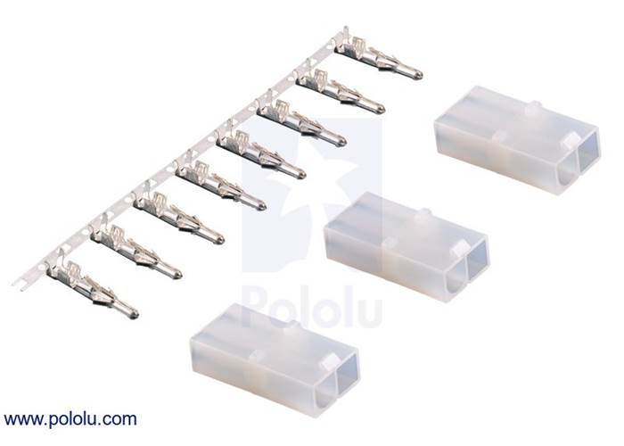 This pack contains enough housings and crimp pins (including two spare pins) for three male connectors (we also offer a pack for the female version). The crimp pins are designed for 14- to 20-AWG wires, and we sell a crimping tool that works well with them. As an alternative, we sell a pre-crimped version of this connector with 10 cm leads.