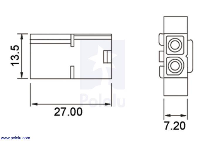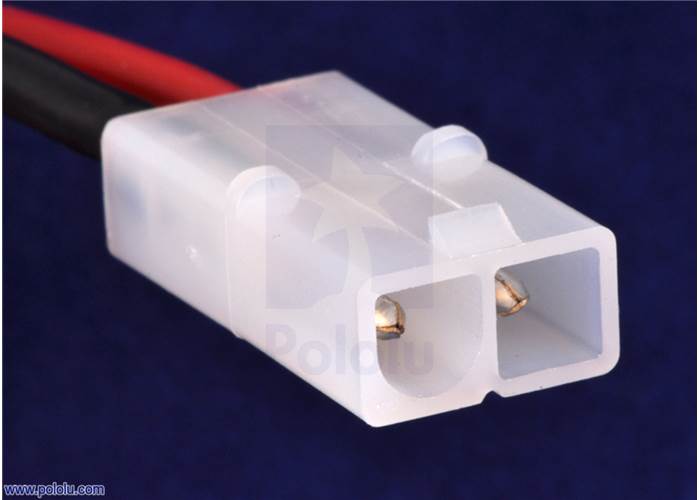 This style of high-current connector is commonly used with the 7.2V sub-C battery packs that power many RC cars. The connector is keyed so that power cannot be reversed, and a latch secures the connection so that it will not become disconnected. You can use a crimping tool to attach these connectors to your own 14- to 20-AWG wires. This pack contains enough housings and crimp pins (including two spare pins) for 3 male connectors.