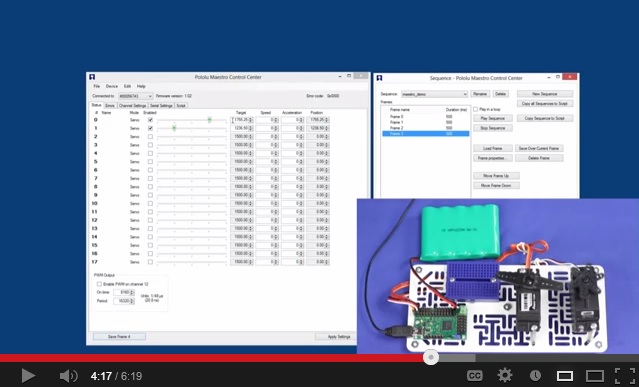 User’s guide for the Pololu Micro Maestro 6-channel USB Servo Controller and the Pololu Mini Maestro 12-, 18-, and 24-Channel USB Servo Controllers.