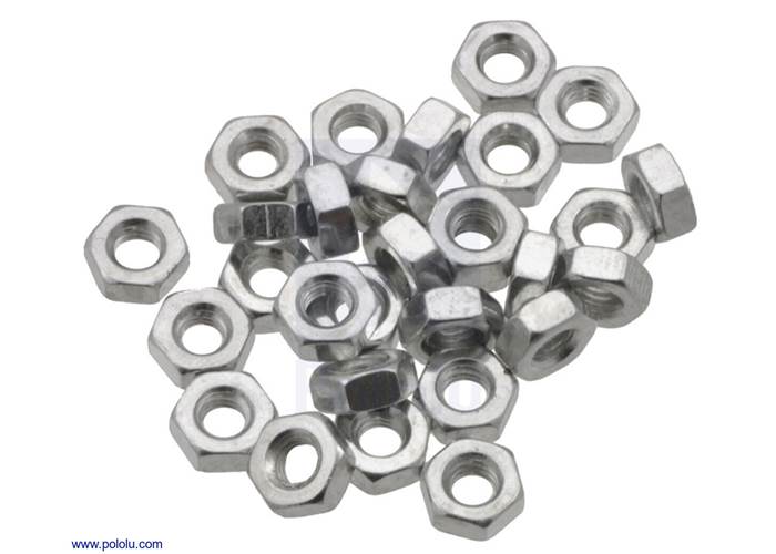This M2.5 hex nut is made from steel, is zinc-plated, and comes in packs of 25.