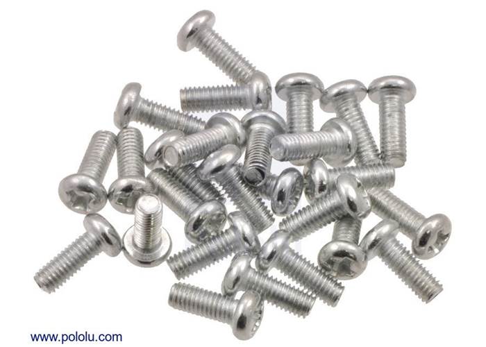 This M2.5, pan-head screw is 6 mm long. It is made from steel, is zinc-plated, and comes in packs of 25.