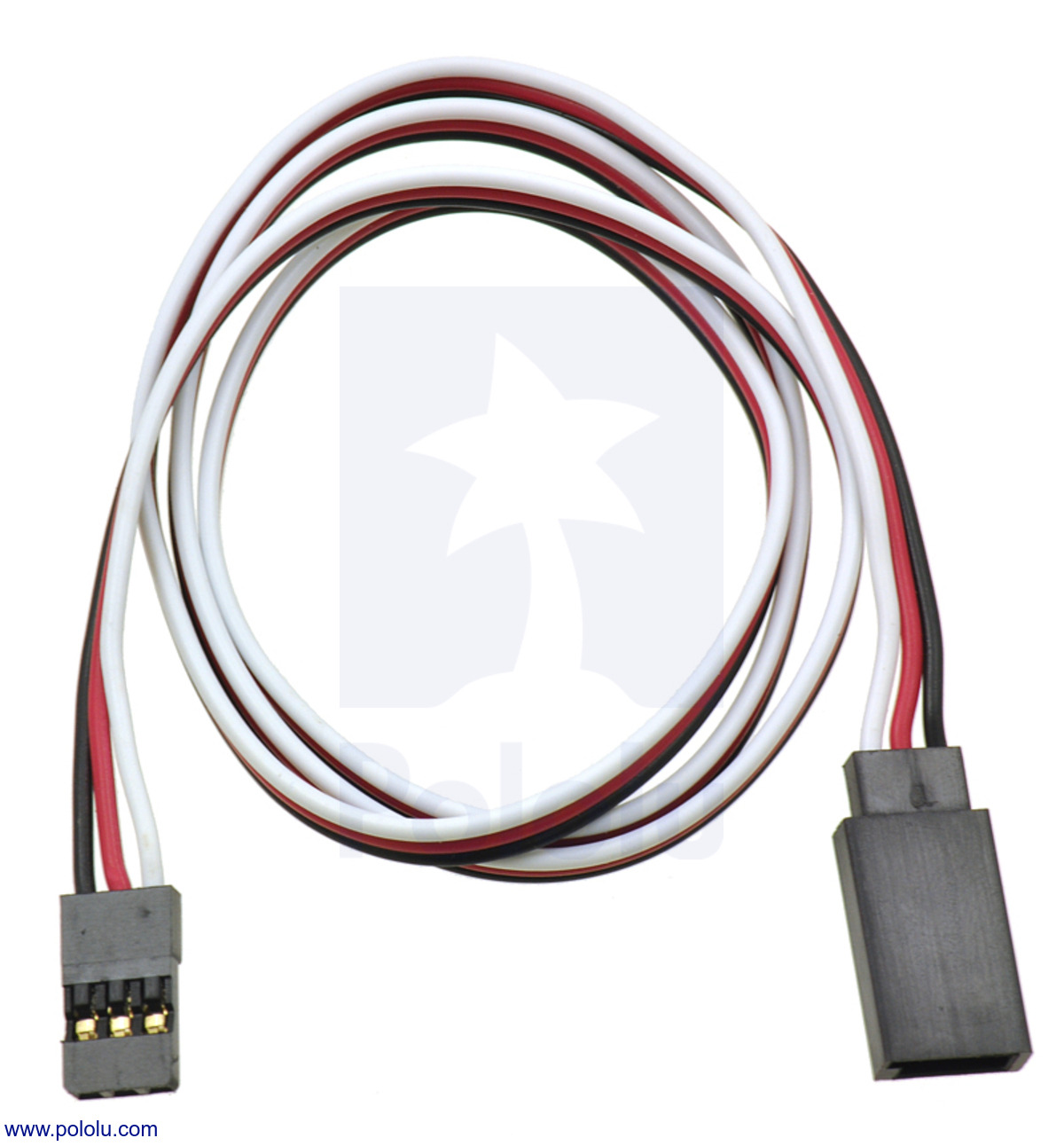 Note: The cable’s female connector is the same as what is found on most generic servos and fits nicely with 0.1" male headers, but is often referred to as “male” in the RC hobby industry. Likewise, the cable’s male connector is often referred to as “female” in the hobby industry because of the outer shroud, even though it internally consists of three male pins. The pictures below show the cable connectors labelled with our gender convention.