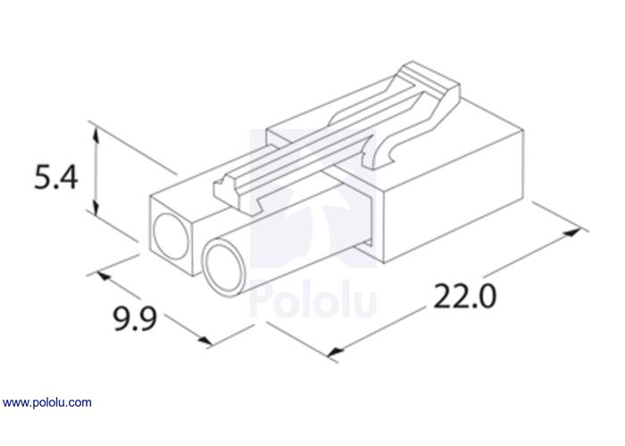 This connector, a smaller version of the female Tamiya plug , is commonly used with battery packs for RC applications. The connector is keyed so that power cannot be reversed, and a latch secures the connection so that it will not become disconnected.
