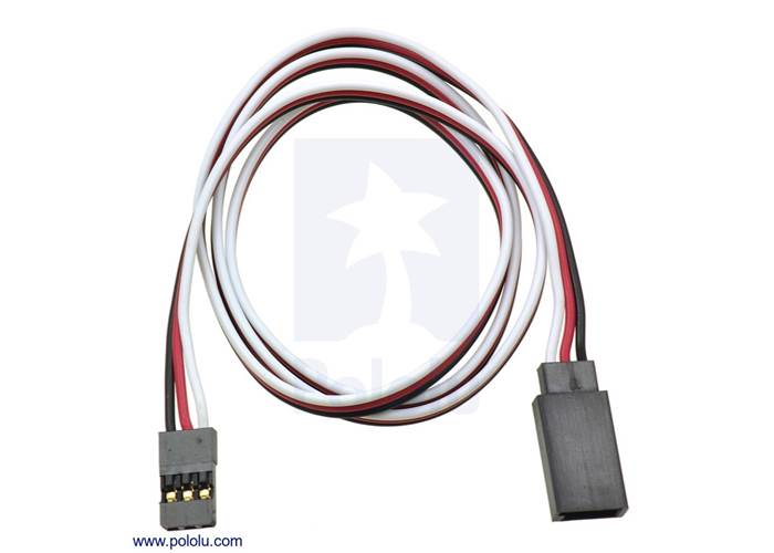Note: The cable’s female connector is the same as what is found on most generic servos and fits nicely with 0.1" male headers, but is often referred to as “male” in the RC hobby industry. Likewise, the cable’s male connector is often referred to as “female” in the hobby industry because of the outer shroud, even though it internally consists of three male pins. The pictures below show the cable connectors labelled with our gender convention.