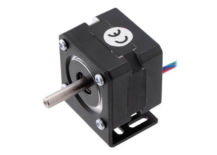 NEMA 14 stepper motor (item #1207) mounted with a Pololu stamped aluminum L-bracket for NEMA 14 stepper motors.