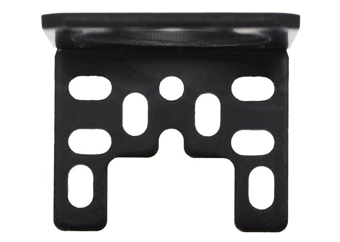 This lightweight (about 15 g) but strong bracket is made from 3mm-thick black anodized aluminium and is specifically designed to work with the typical faceplate mounting holes of NEMA 17 stepper motors. The slots through which the motor mounts to the bracket allow for 2 mm of play for fine-tuning position, and four 6 mm M3 screws are included for securing the motor to the bracket (note: these M3 screws work with all of the NEMA 17 stepper motors we carry; different screws might be required when using this bracket with stepper motors from other suppliers). The other side of the bracket includes a variety of slots and holes that can be used with #6, #8 and M4 screws.