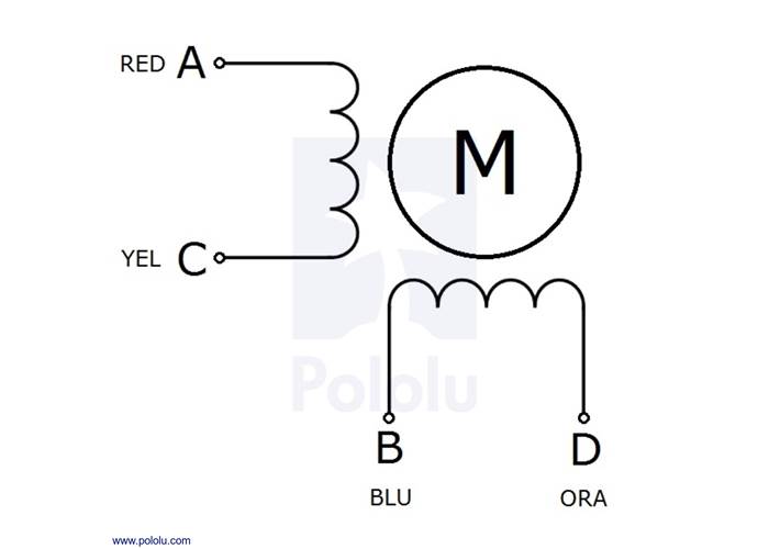 This tiny bipolar stepping motor from Sanyo has a 1.8° step angle (200 steps/revolution) and is available with a single shaft or double shaft. Each phase draws 300 mA at 6.3 V, allowing for a holding torque of 66 g-cm (0.92 oz-in). The motor has four colour-coded wires terminated with bare leads: red and yellow connect to one coil; orange and blue connect to the other. It can be controlled by a pair of suitable H-bridges (one for each coil), but we recommend using a bipolar stepper motor driver or one of our Tic Stepper Motor Controllers. In particular, the Tics make control easy because they support six different interfaces (USB, TTL serial, I²C, RC, analogue voltages, and quadrature encoder) and are configurable over USB with our free configuration utility.
