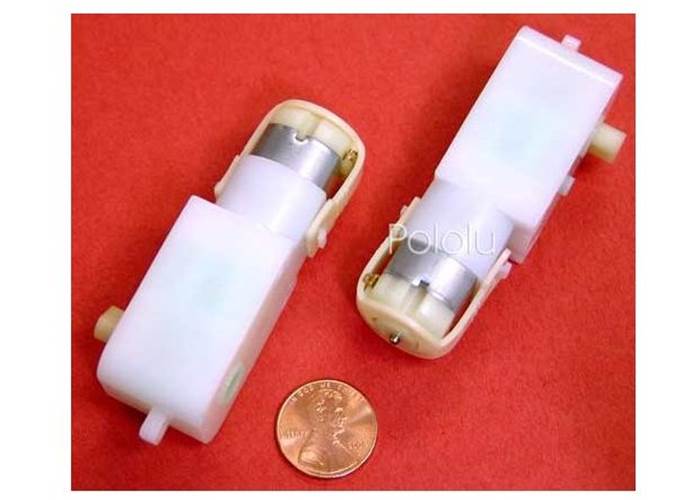 This 143:1 gearmotor (gearbox with motor) is a great low-cost alternative to modified hobby servos or Tamiya gearboxes. The low-current motor is a perfect match for our qik 2s9v1 dual serial motor controller, and the compact size of 2.17" x 1.89" x 0.906" (55 x 48 x 23 mm) makes this unit an attractive choice for small robot designs.