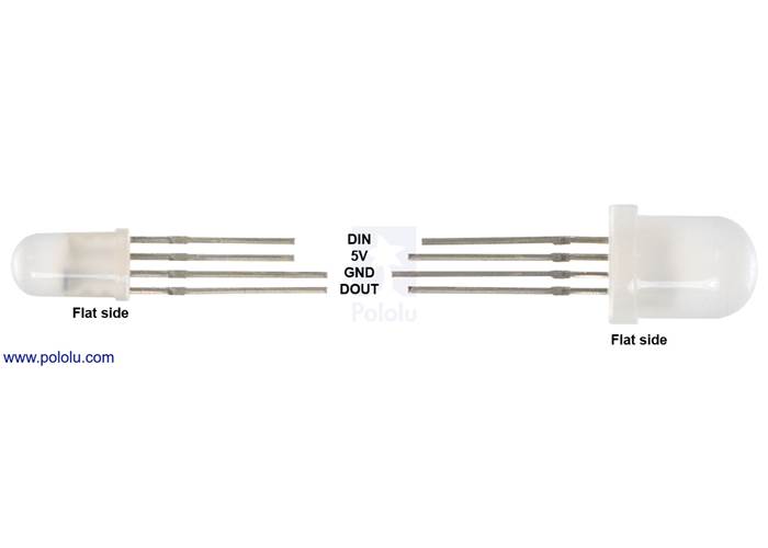 Pinout of 5 mm and 8 mm addressable RGB WS2811 LEDs with diffused lenses.