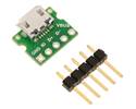 The remaining lines from the USB connector (D−, D+, ID, and GND) are broken out to a set of pins adjacent to VOUT, allowing this module to also function as a basic USB Micro-B connector breakout board.