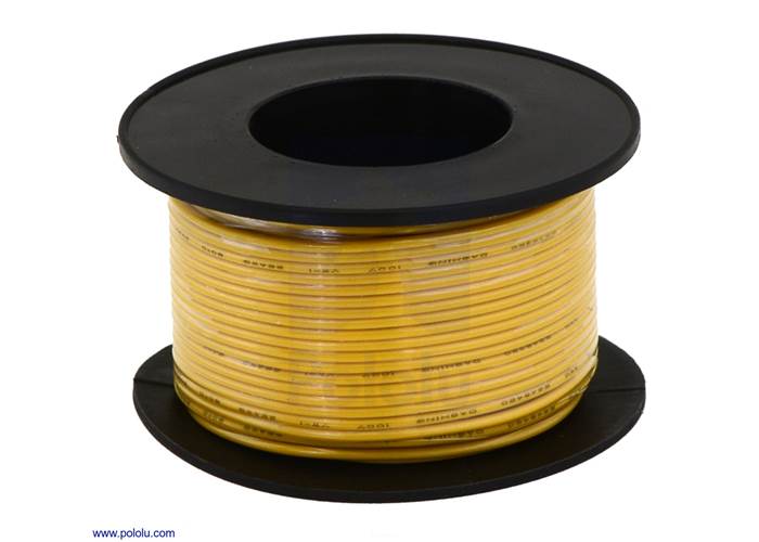 This is a spool with 100 feet of yellow 30 AWG stranded copper hook-up wire.