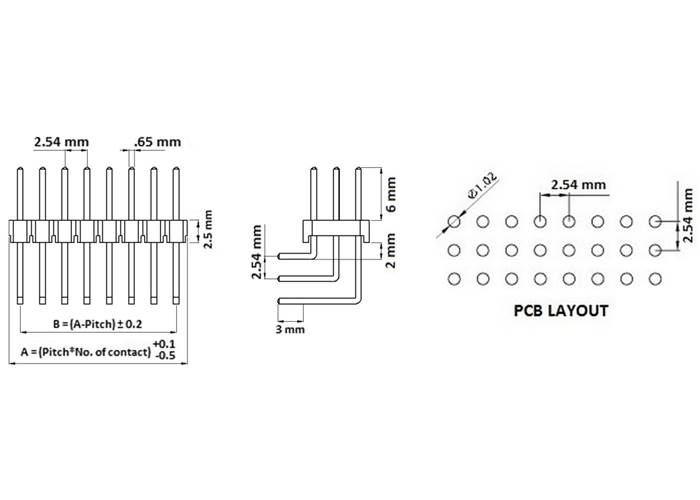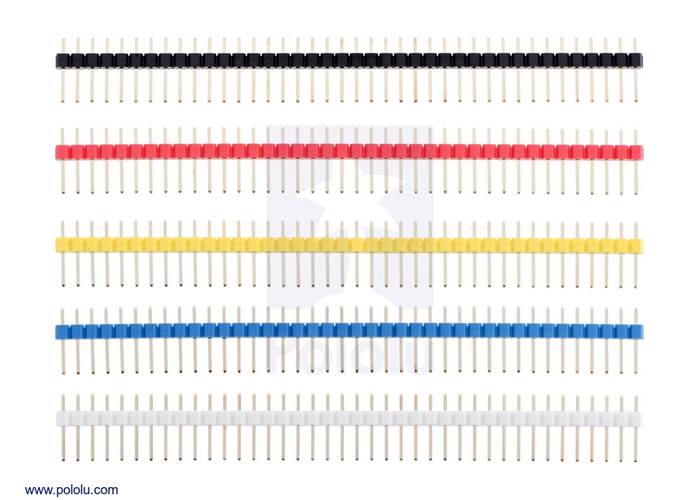 These header strips have a 0.1″ (2.54 mm) pitch and are commonly used as low-cost connectors. The standard spacing allows use with solderless breadboards, prototyping PCBs, female headers, and our premium and pre-crimped jumper wires. The single-row header strips are available in a variety of lengths, and these are also easy to snap into smaller strips to fit specific application requirements. The double- and triple-row strips, which are only available in 40-pin lengths, can also be broken into smaller strips, but it takes a little more effort, and it is sometimes easier to use wire/diagonal cutters.