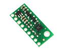 A 1×9 strip of 0.1″ header pins and a 1×9 strip of 0.1″ right-angle header pins are included, as shown in the picture below. You can solder the header strip of your choice to the board for use with custom cables or solderless breadboards, or you can solder wires directly to the board itself for more compact installations.